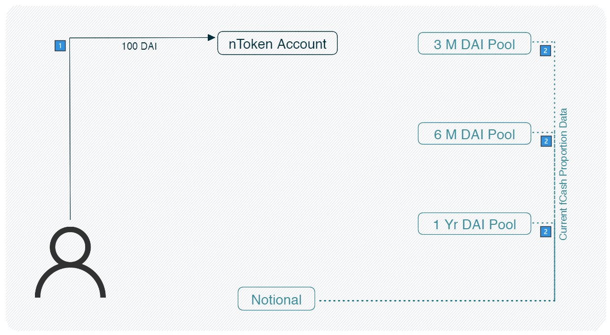 A user deposits cash (in this example, DAI) into the nToken account.