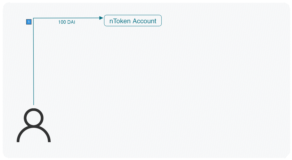A user deposits cash (in this example, DAI) into the nToken account.