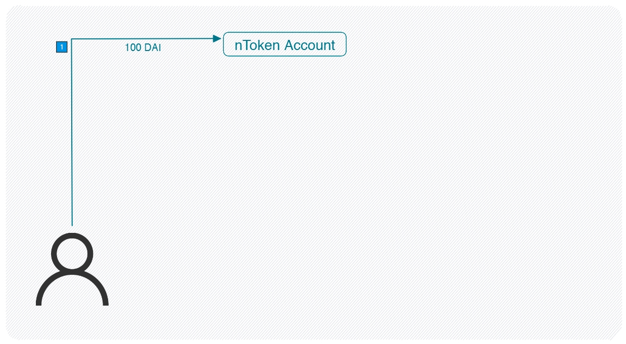 When a user mints nTokens, they deposit cash into the nToken account and the nToken distributes their liquidity to the individual liquidity pools.