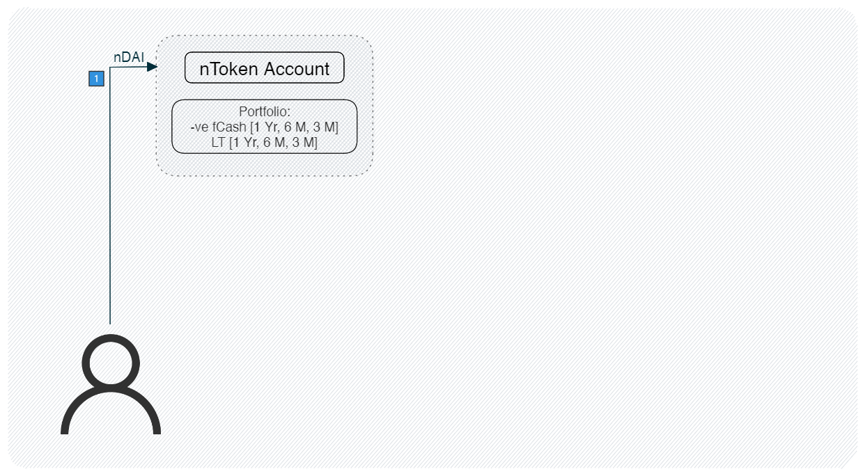 When a user redeems the nToken portfolio will hold liquidity tokens and negative fCash. The first step to redeeming is for the user to give up their nTokens.