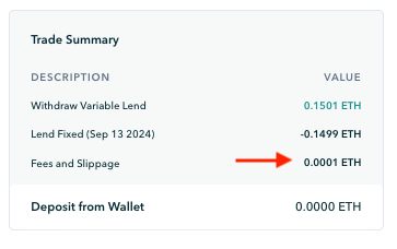When you convert your variable lend to a fixed rate, you will pay a fee. You can find the size of this fee on the trade summary.