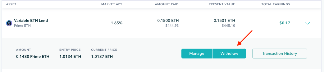 The interest rate you earn depends on the interest rate curve and the utilization of the lending pool.