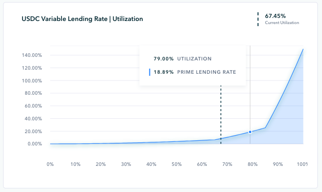 You can see what the lending rate will be at different utilization levels by hovering your mouse over the chart: