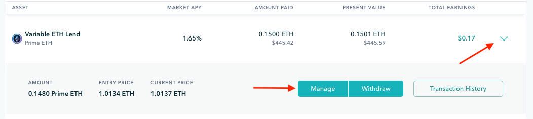 To see the historical interest rate, go to the transaction page of the asset you want to lend.