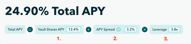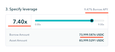 Selecting your leverage changes how much you borrow which changes the borrow rate and the total APY.