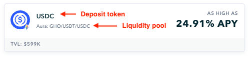 3. Pick your opportunity. Each opportunity card shows the deposit token and the pool it deploys into: