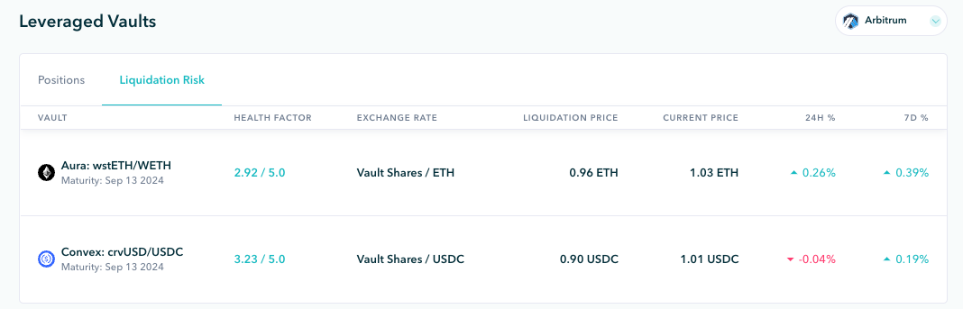 This means that the risk of liquidation is driven by potential de-pegs of one of the tokens in the liquidity pool, so be sure to choose liquidity pools carefully.