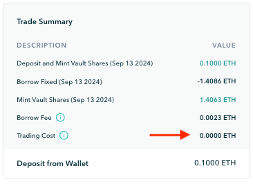 The Notional UI will show you a detailed breakdown of the borrow fees on the trade summary when you enter or exit your position.